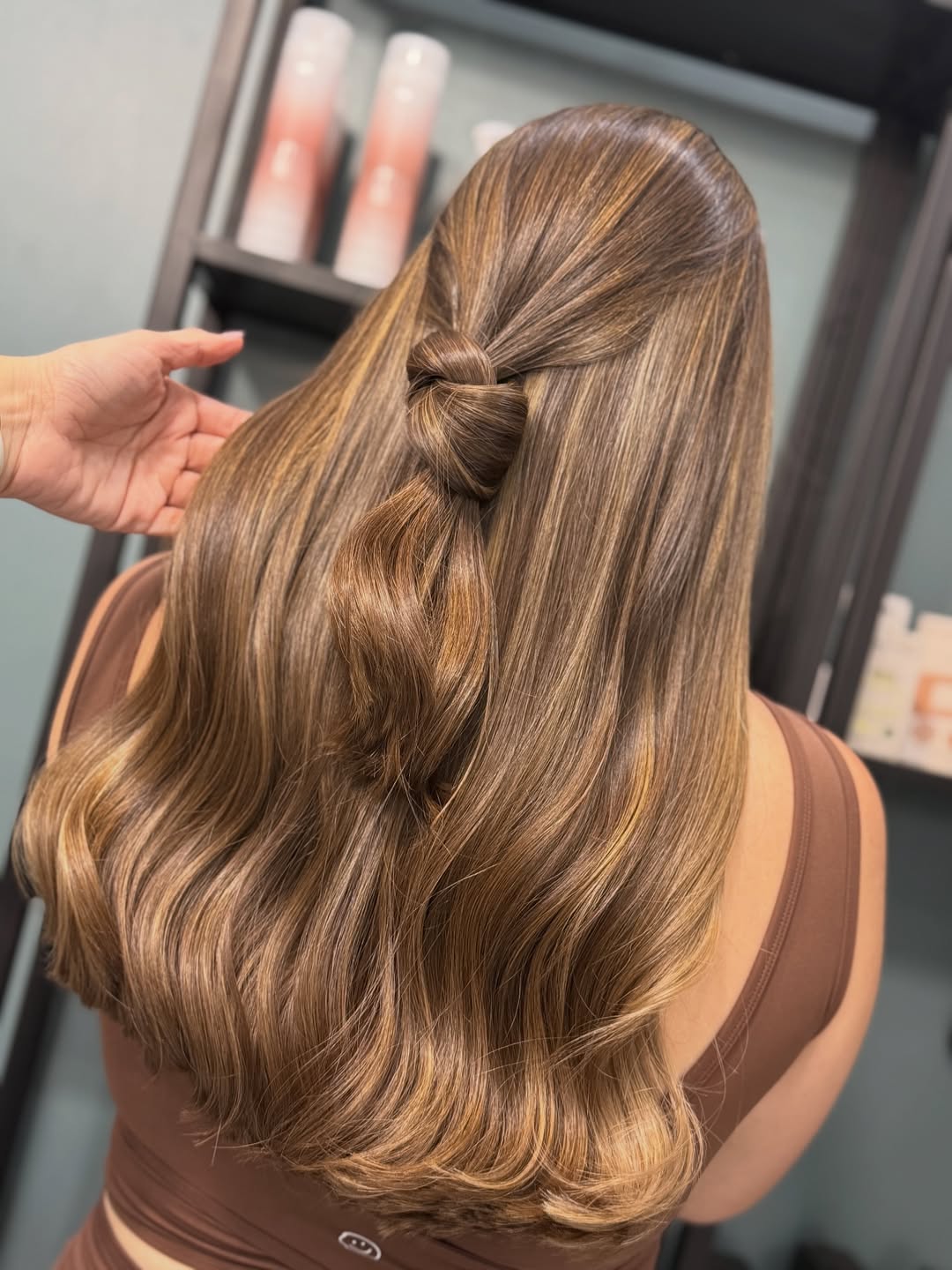 The half-up twist adds a subtle styling detail that elevates the overall look—perfect for evenings out or more formal occasions. It’s proof that Natural-looking color can still feel elevated and intentional.