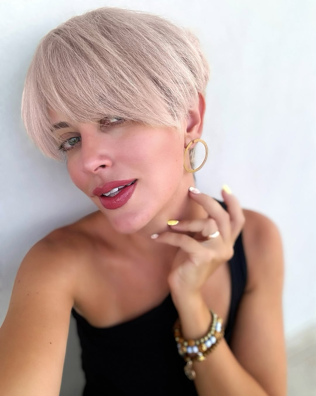 The fringe here is subtle but impactful. It frames the eyes without overwhelming the face, making it ideal for women looking for understated elegance. According to stylists, micro fringe is making a quiet comeback for 2026, especially in short Styles like this. It’s low-maintenance but high-impact—exactly what summer calls for.