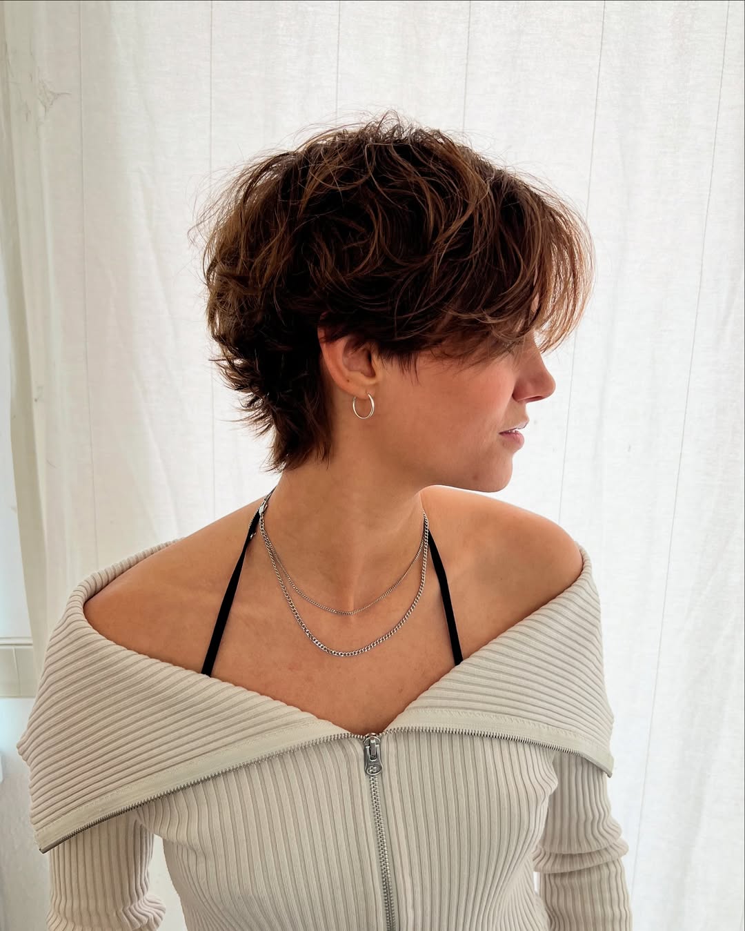 The neutral Brown tone keeps the style grounded, allowing the texture to take center stage. This is the kind of Inspo you’ll often see highlighted by trend forecasters as part of the evolving short hair movement in 2026—personal, expressive, and unapologetically unique.