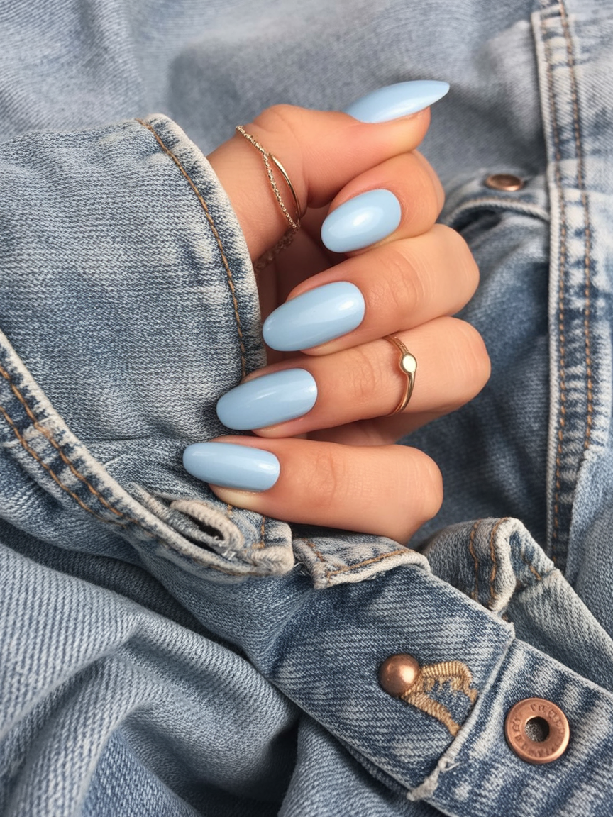 These nails have that gentle, comforting vibe of slipping into your favorite worn-in denim jacket. The creamy baby blue polish feels calm and timeless, and the rounded almond shape keeps everything soft and naturally elegant. It’s cute and simple, and it’s the kind of inspo you gravitate to when you want something fresh without overthinking it.