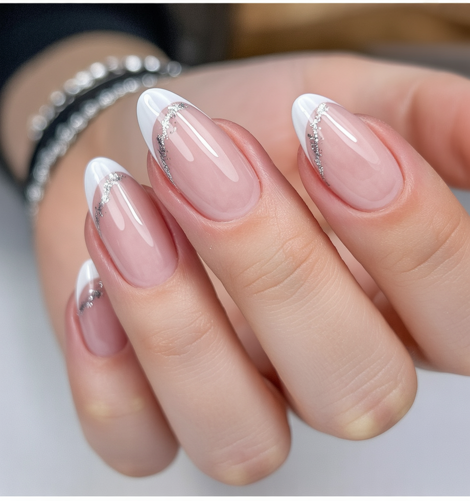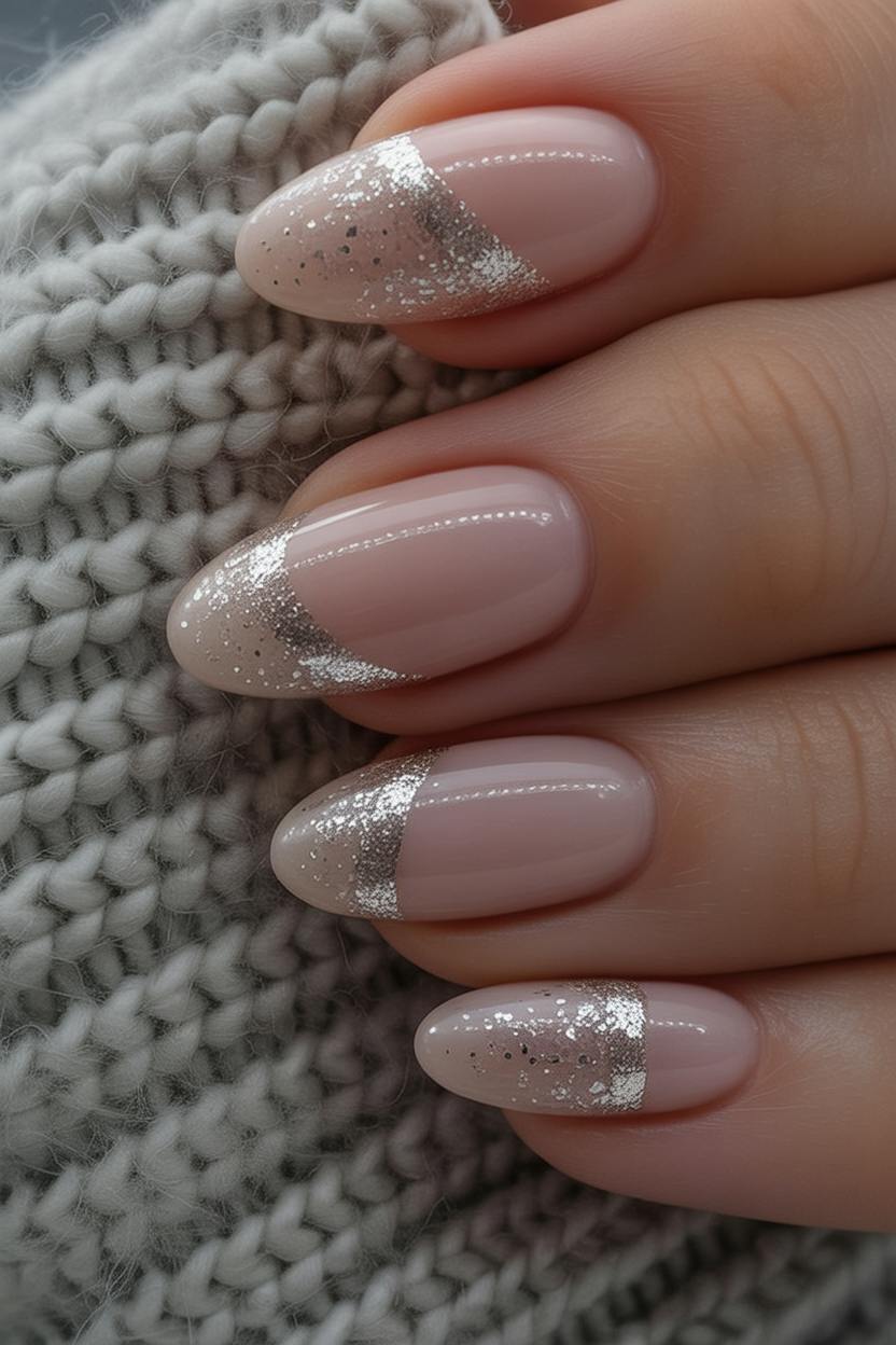 The glitter is focused on the cuticle and gently diffuses outwards, thus forgiving to nail growth and easily able to wear longer. The almond shapes are particularly effective in this case, making the fingers stretch into a feminine figure. It is a simple style to keep and yet leave you in the mood of the season- ideal when you are in love with a neat appearance and still feel like celebrating the winter.