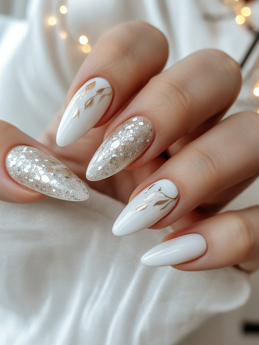 6. White and Gold Winter Leaves