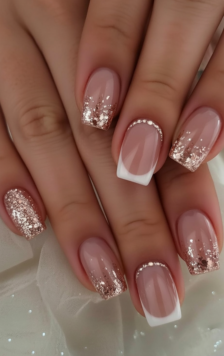 20. Rose Gold Glitter & Classic French