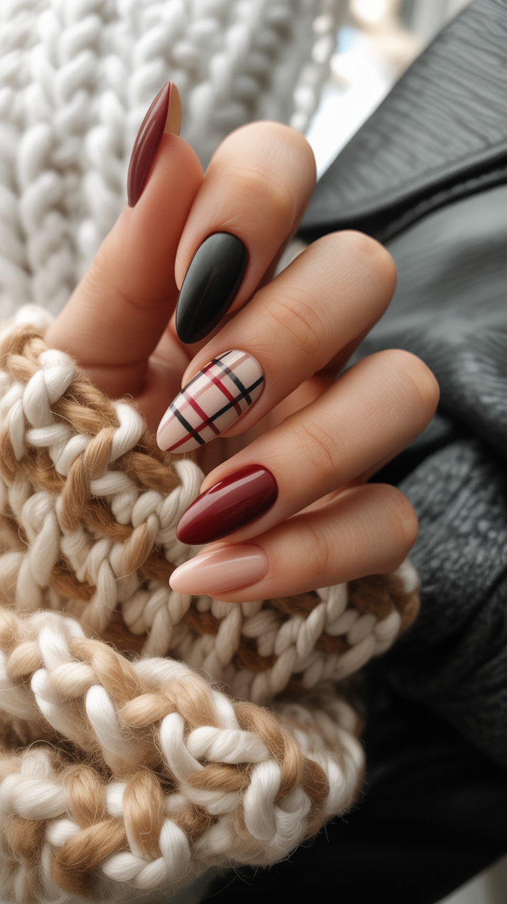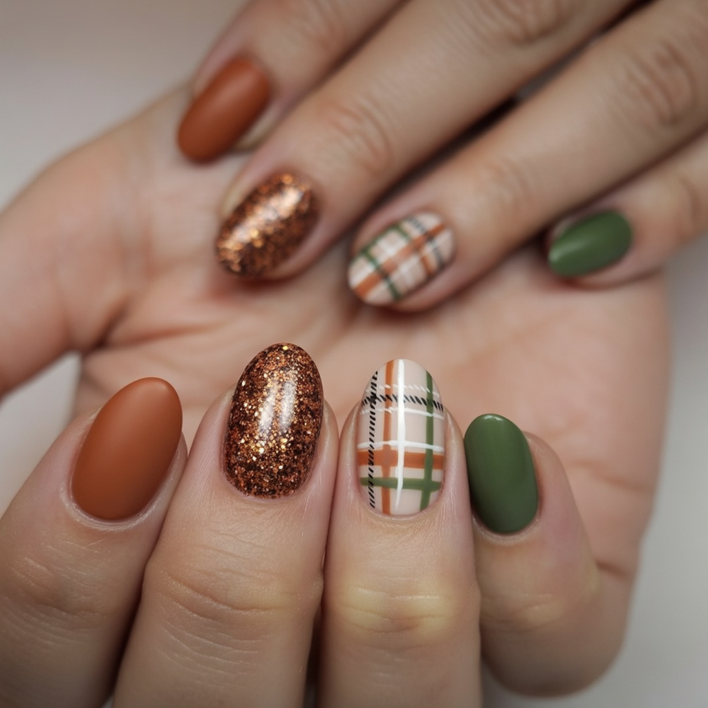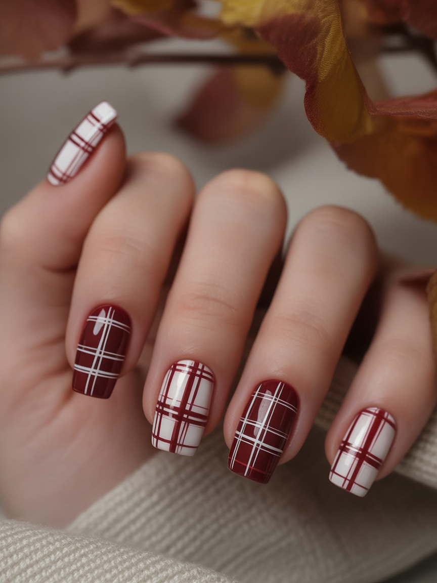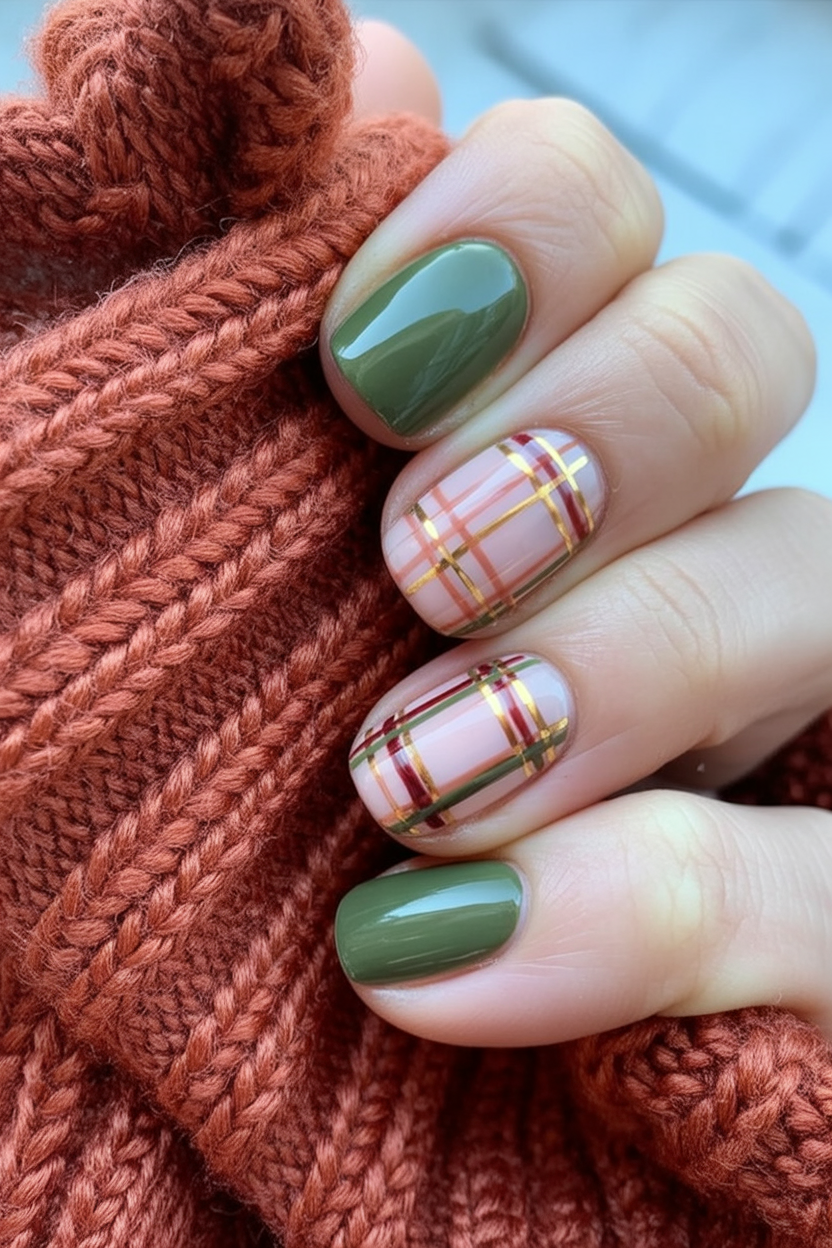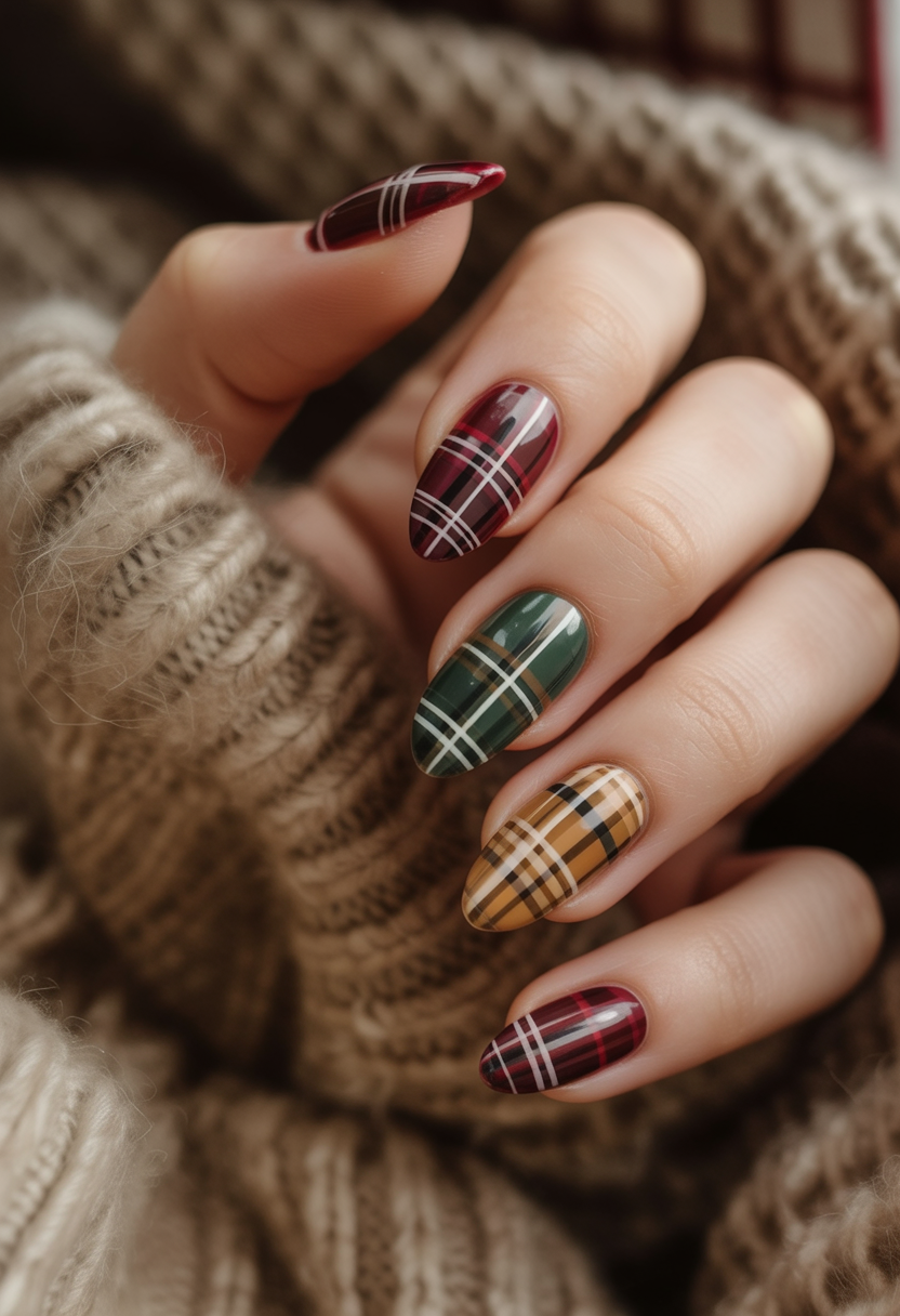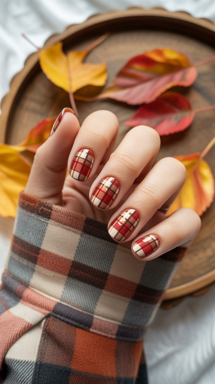 13. Cozy Fall Plaid Nails