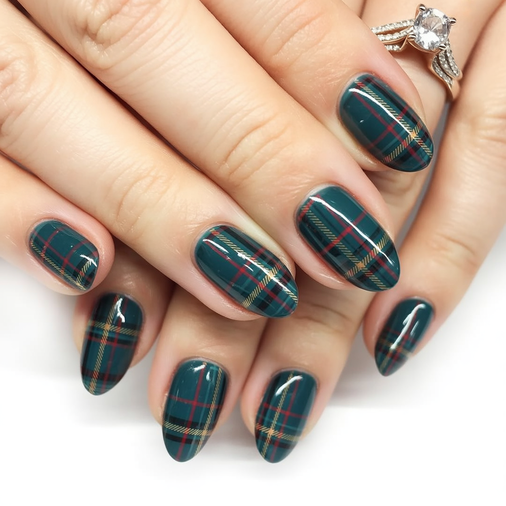 10. Classic Tartan Plaid Nails