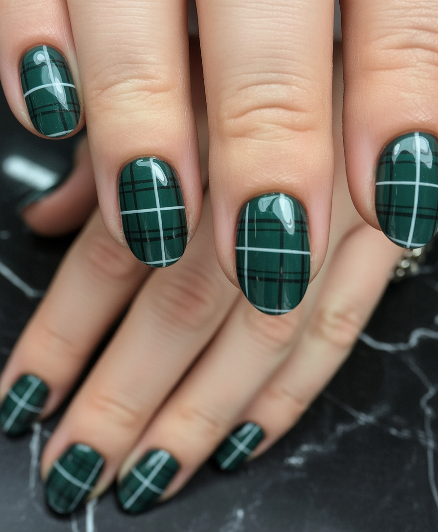 6. Sleek Dark Green Plaid Style